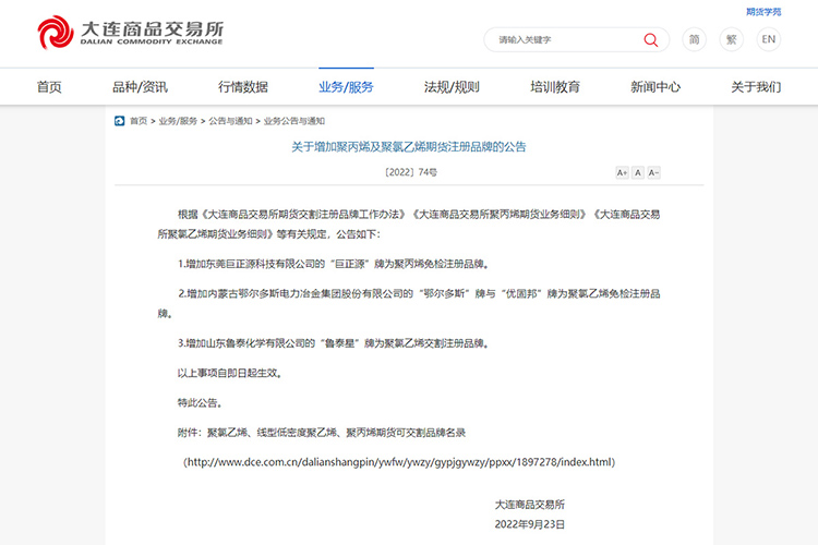 9月23日,大連商品交易所發(fā)布公告,增加?xùn)|莞巨正源科技有限公司的“巨正源”牌為聚丙烯免檢注冊品牌。